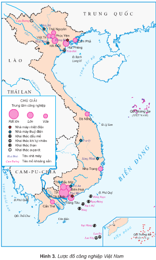 Dựa vào hình 3. cho biết các ngành công nghiệp khai thác dầu, than, a-pa-tít có ở những đâu.