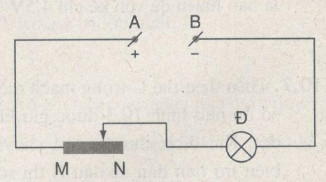 Cho mạch điện có sơ đồ như hình 10.1, trong đó hiệu điện thế giữa hai điểm A và B được giữ không đổi và đèn sáng bình thường khi biến trở có điện trở bằng 0. Câu phát biểu nào dưới đây là đúng?