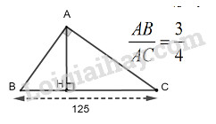 Giả sử \(\Delta ABC\) vuông tại \(A\) chiều cao \(AH, BC=125cm\) và \(\dfrac{{AB}}{{AC}} = \dfrac{3}{4}\)
