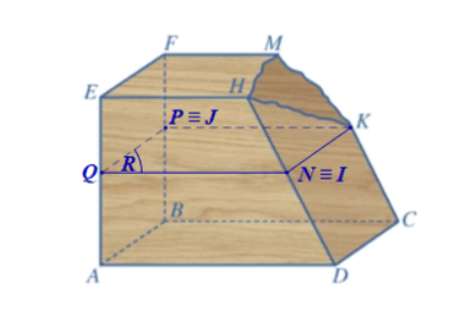 Một khối gỗ có các mặt đều là một phần của mặt phẳng với (ABCD) // (EFGH), CK // DH. Khối gỗ bị hỏng một góc (Hình 91). Bác thợ mộc muốn làm đẹp khối gỗ bằng cách cắt khối gỗ theo mặt phẳng (R) đi qua K và song song với mặt phẳng (ABCD).