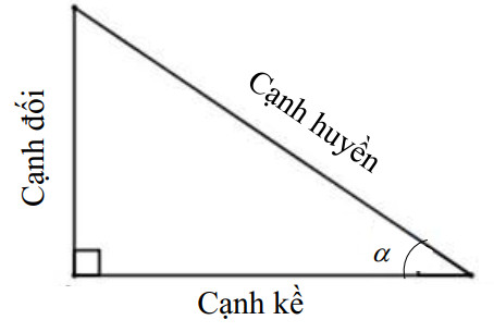 \(\sin \alpha =\dfrac{cạnh\ đối}{cạnh\ huyền};\)         \(\cos \alpha = \dfrac{cạnh\ kề}{cạnh\ huyền}\);