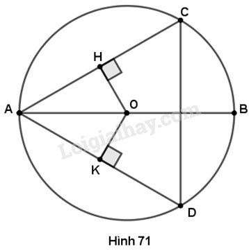 Ta có \(AC = AD\) nên \(OH = OK\) (vì hai dây bằng nhau thì cách đều tâm).