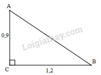Cho tam giác \(ABC\) vuông tại \(C\), trong đó \(AC=0,9m\), \(BC=1,2m\). Tính các tỷ số lượng giác của góc \(B\), từ đó suy ra các tỷ số lượng giác của góc \(A\).