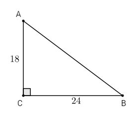 \(\Rightarrow AB = \sqrt {A{C^2} + B{C^2}} \)\(\, = \sqrt {{{18}^2} + {{24}^2}}  = 30\) (cm)