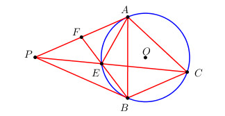 Từ điểm P ở ngoài đường tròn (O), vẽ hai tiếp tuyến tiếp xúc với (O) tại A và B. Vẽ dây cung BC // PA. Gọi E là giao điểm thứ hai của PC với đường tròn (O) và F là giao điểm của BE và PA.