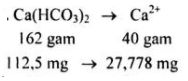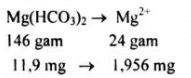 Tính tổng khối lượng theo mg/lít của các ion Ca2+ và Mg2+ có trong một loại nước tự nhiên. Biết rằng trong nước này có chứa đồng thời các muối Ca(HCO3)2, Mg(HCO3)2 và CaSO4 với khối lượng tương ứng là 112,5mg/l, 11,9mg/l và 54,5mg/l.