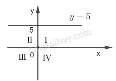 Các điểm có tung độ bằng \(5\) là những điểm nằm trên đường thẳng song song với trục \(Ox\) , cắt trục tung là điểm có tung độ bằng \(5\) (đường thẳng \(y = 5\)).