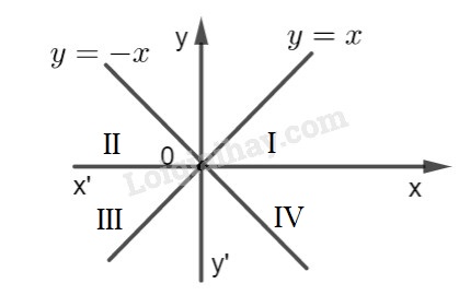 Các điểm có tung độ và hoành độ đối nhau là những điểm nằm trên đường thẳng chứa tia phân giác của góc \(x’Oy\) hay phân giác của góc phần tư số II và góc phần tư  số IV ( đường thẳng \(y = -x\)).