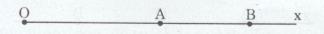 Trên tia Ox, vẽ các đoạn thẳng OA và OB sao cho OA = 4cm, OB = 7cm. Tính AB.