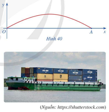 Một cây cầu có dạng cung OA của đồ thị hàm số \(y = 4,8\sin \frac{x}{9}\) và được mô tả trong hệ trục tọa độ với đơn vị trục là mét như ở Hình 40.