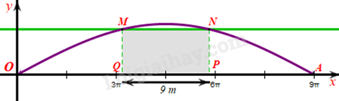 Khi đó \({y_M} = 4,8 \cdot \sin \frac{{{x_M}}}{9} = 4,8 \cdot \sin \frac{{OQ}}{9} \approx 4,8 \cdot \sin \frac{{9,65}}{9} \approx 4,22(\;{\rm{m}}) < 4,3\) (m).