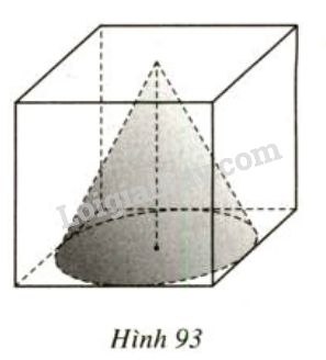 b) Đỉnh của hình nón tiếp xúc với một mặt của hình lập phương nên đường cao của hình nón bằng với cạnh của hình lập phương hay chiều cao \(h=1.\)