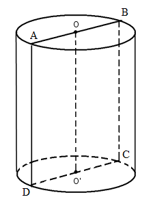 Mặt phẳng đi qua \(OO’\) của hình trụ, cắt hình trụ theo thiết diện là hình vuông \(ABCD\) cạnh \(2R\), do đó bán kính đáy bằng \(R\) và đường sinh \(AD = 2R\).