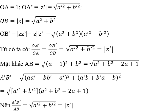 Vậy tam giác OA’B’ đồng dạng với tam giác OAB (tỉ số đồng dạng bằng |z’|).