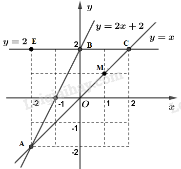a) Vẽ đồ thị các hàm số \(y = x\)   và  \(y = 2x + 2\) trên cùng một mặt phẳng tọa độ.