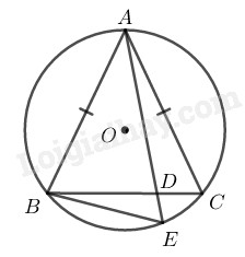 \( \Rightarrow \widehat {ABC} = \widehat {AEB}\) (\(2\) góc nội tiếp chắn \(2\) cung bằng nhau)
