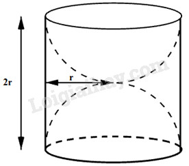 Một khối gỗ dạng hình trụ, bán kính đường tròn đáy là \(r\), chiều cao \(2r\) (đơn vị: \(cm\)). Người ta khoét rỗng hai nửa hình cầu như hình 79. Hãy tính diện tích bề mặt của khối gỗ còn lại (diện tích cả ngoài lẫn trong).