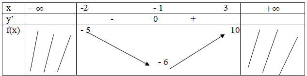 \(f’\left( x \right) = 0 \Leftrightarrow  x=- 1 \in \left[ { – 2;3} \right]\)