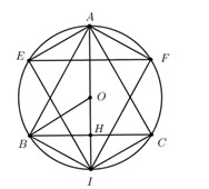Vì IE // AC \( \Rightarrow cung\,AE = cung\,CI\). Vì IF // AB \( \Rightarrow cung\,AF = cung\,BI\)
