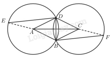 Ta có \((A; AD)\) và \((C; CB)\) có bán kính \(AD = CB\) là cạnh của hình thoi \(ABCD\) nên hai đường tròn đó bằng nhau.