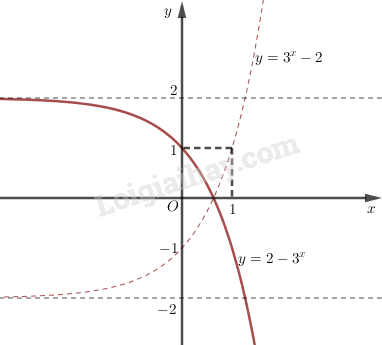 – Phần đối xứng qua trục hoành của đồ thị hàm số  \(y = {3^x} – 2\) ứng với \({3^x} – 2 < 0\).