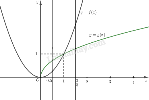 Đặt \(f(x) = {x^2},x \in R\);\(g(x) = {x^{\frac{1}{2}}},x > 0\)