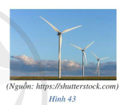 Quan sát Hình 43 và cho biết vị trí tương đối của hai trong ba cột tuabin gió có trong hình.
