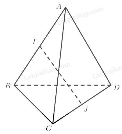 Cho tứ diện \(ABCD\) với \(I\) và \({\rm{?}}\) lần lượt là trung điểm các cạnh \(AB\) và \(CD\). Mệnh đề nào sau đây đúng?