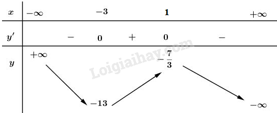 Hàm số đạt cực đại tại \(x = 1\), \(\displaystyle {y_{CD}} = {{ – 7} \over 3}\)