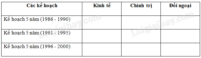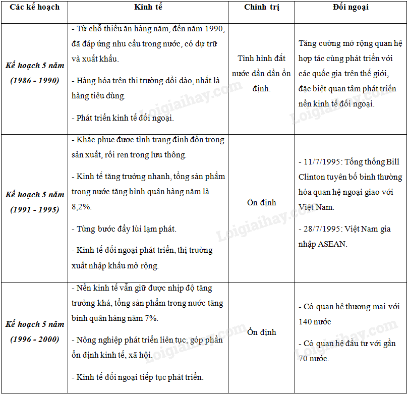 Em hãy nêu những thành tựu chủ yếu trong công cuộc đổi mới đất nước từ năm 1986 đến năm 2000 theo các lĩnh vực sau: