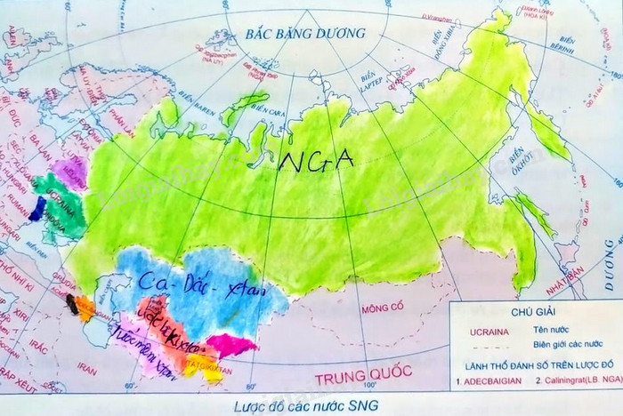 2. Điền tên các nước trong Cộng đồng các quốc gia độc lập (SNG) vào lược đồ cho đúng.