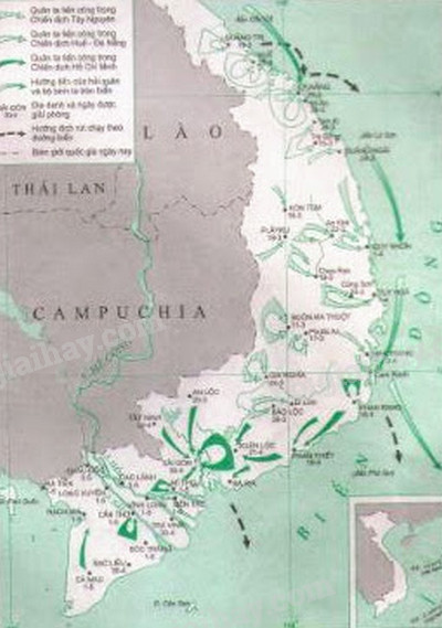 Hình 79. Lược đồ diễn biến cuộc Tổng tiến công và nổi dậy Xuân 1975