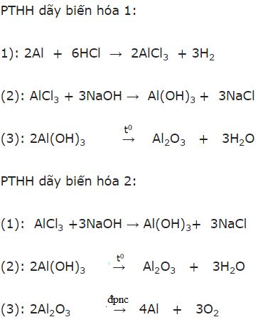 Dãy biến hóa 2: \(AlCl_3 → Al(OH)_3 → Al_2O_3 → Al\)