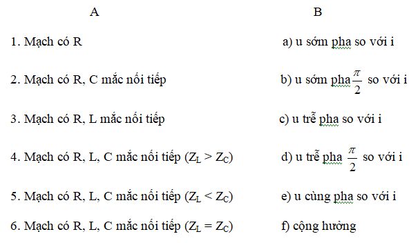 Dòng nào ở cột A tương ứng với dòng nào ở cột B ?