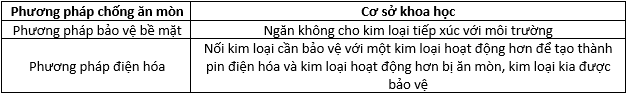 Hãy nêu những phương pháp thường được áp dụng để chống ăn mòn kim loại. Cơ sở khoa học của mỗi phương pháp đó