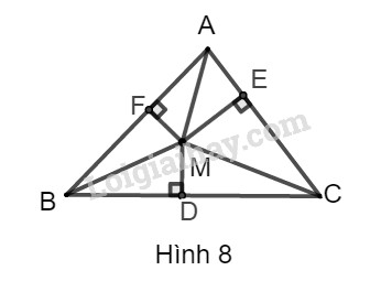 Giải bài 20 trang 105 sách bài tập toán 9. Cho tam giác vuông ABC. Từ một điểm M bất kì trong tam giác kể MD, ME, MF lần lượt vuông góc với các cạnh BC, AC, AB