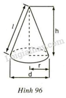 – Đường sinh \(l = \sqrt {{r^2} + {h^2}}  = \sqrt {{5^2} + {{\left( {\dfrac{{120}}{\pi }} \right)}^2}}  \)