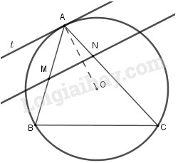 Cho \(A, B, C\) là ba điểm trên một đường tròn. \(At\) là tiếp tuyến của đường tròn tại \(A\). Đường thẳng song song với \(At\) cắt \(AB\) tại \(M\) và cắt \(AC\) tại \(N\). Chứng minh \(AB.AM = AC.AN\)