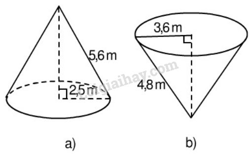+ Tính diện tích toàn phần ở hình a) : \({S_{tp}} = {S_d} + {S_{xq}}.\)
