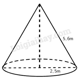 Vậy diện tích toàn phấn của hình nón là \({S_{tp}} = 6,25\pi  + 14\pi  = 20,25\pi \left( {{m^2}} \right).\)