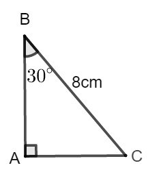 Giả sử tam giác \(ABC\) có \(\widehat A = 90^\circ ,\widehat B = 30^\circ ,BC = 8cm\).
