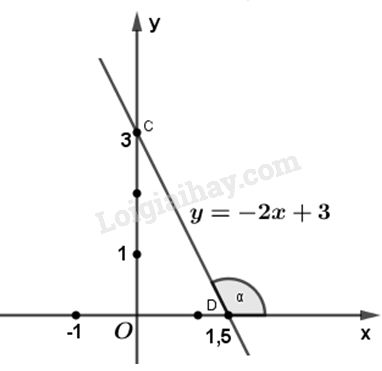 b) Gọi \(\alpha \) là góc tạo bởi đường thẳng y = -2x + 3 và trục Ox
