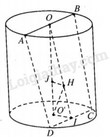 Ta có : \(AB = 2R,OI = {{OO’} \over {\sin \alpha }} = {h \over {\sin \alpha }}.\)