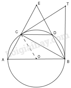 Trên một đường tròn, lấy liên tiếp ba cung \(AC,CD,DB\) sao cho sđ\(\overparen{AC}\) =sđ\(\overparen{CD}\) =sđ \(\overparen{DB} = 60^\circ \) . Hai đường thẳng \(AC\) và \(BD\) cắt nhau tại \(E\). Hai tiếp tuyến của đường tròn tại \(B\) và \(C\) cắt nhau tại \(T\).