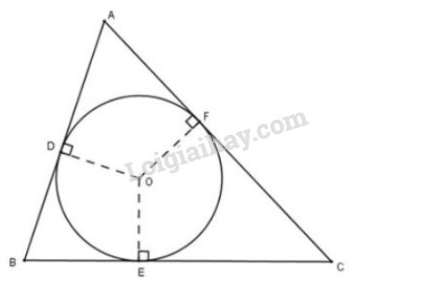Trên hình \(86\), tam giác \(ABC\) ngoại tiếp đường tròn \((O)\).