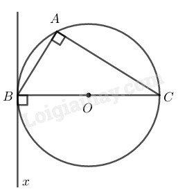 Cho tam giác \(ABC\) nội tiếp đường tròn \((O).\) Vẽ tia \(Bx\) sao cho tia \(BC\) nằm giữa hai tia \(Bx;\) \(BA\) và \(\widehat {CBx}= \widehat {BAC}\). Chứng minh rằng \(Bx\) là tiếp tuyến của \((O).\)