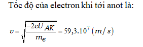 b) Tốc độ của các êlectron khi tới anôt. Bỏ qua tốc độ ban đầu của êlectron khi bật ra khỏi catôt.