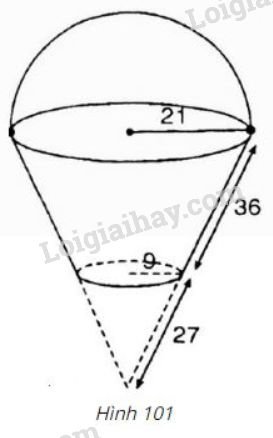 Một xô bằng inốc có dạng nón cụt đựng hóa chất, có các kích thước cho ở hình 101 (đơn vị:cm).