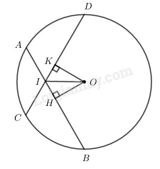 Suy ra: \(OH = OK\) (hai dây bằng nhau cách đều tâm)