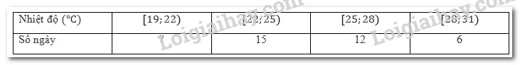 b) Thống kê nhiệt độ tại một địa điểm trong 40 ngày, ta có bảng số liệu sau: